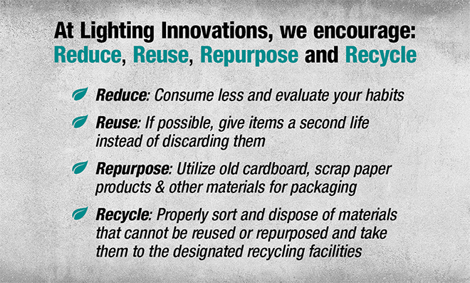 As a leading LED luminaire manufacturer, Lighting Innovations has a strong commitment to sustainable production and design. Along with our manufacturing practices and recycling initiatives, energy reduction is paramount.